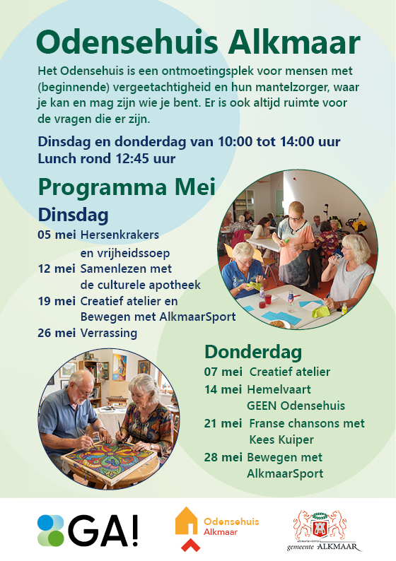 Het Odensehuis is iedere dinsdag en donderdag van 10:00 tot 14:00 met om 12:45 een lunch, in Wijkcentrum De Oever Amstelstraat 1, Oudorp Alkmaar.