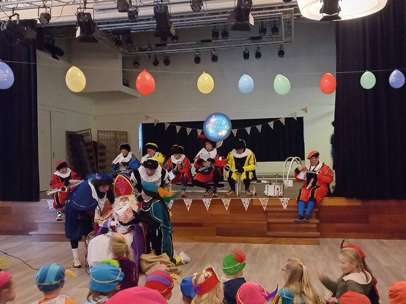 Aankomst van Sint bij de Kippenbrug. Sint maakt onder begeleiding van de brandweer een rondrit door Oudorp (route; Saturnusstraat,‘t Wuiver, Herenweg en Marestraat) waarna hij aankomt bij de Oever.