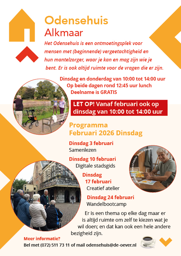 Het Odensehuis is een ontmoetingsplek voor mensen met (beginnende) vergeetachtigheid en hun mantelzorger, waar je kan en mag zijn wie je bent. Er is ook altijd ruimte voor de vragen die er zijn.