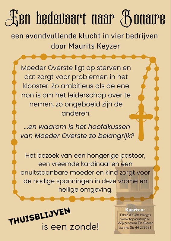 Info: Kaarten vanaf januari verkrijgbaar bij de Oever en Lianne: 06 4423 9531