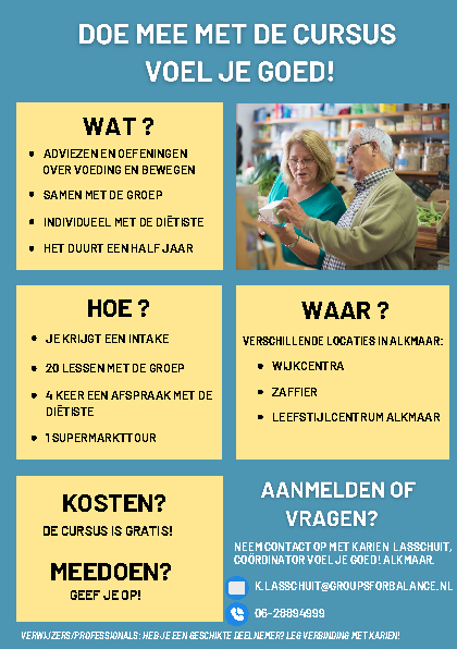 Klaar om je aan te melden? Stuur een e-mail naar k.lasschuit@groupsforbalance.nl of bel naar het Leefstijlcentrum op 06 2889 4999